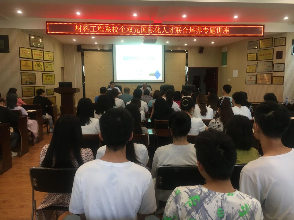 为更好的落实公司与中材国际(南京)工程股份有限公司、中建材智慧工业科技有限公司等公司签署的“一带一路”建材项目人才智力资源开发合作协议,为国家“一带一路”建材项目提供人才智力资源支撑,增加材料工程系专业教师、“一带一路”国际班(建材20级)同学对中材国际“一带一路”沿线企业,尤其是建材企业在海外的发展状况有个全面的了解,为材料工程系专业教师和“国际班”同学未来跨出国门,走向世界,服务海外建材企业打下坚实的基础。6月29日上午,材料工程系邀请中建材智慧工业科技有限公司总工程师兼生产管理部总经理商建平在材料大楼202会议室,作了题为“走向世界的水泥人”的专题讲座,材料工程系主任杨峰、副主任贾陆军、部分专业教师、“一带一路”国际班(建材20级)全体同学、建材专业20级部分同学代表参加了本次讲座。贾陆军主持了本次活动。