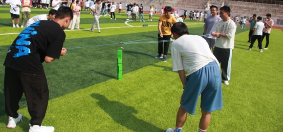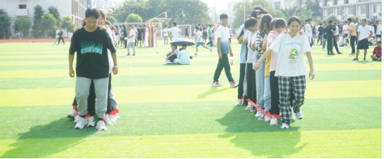 十人纵队用布带把左右脚绑在一起,运动员们手搭着手,心连着心。裁判的哨声响起,两队“巨人”们喊着口号,在属于他们的人生赛场上砥砺前行。相信运动员们都懂得了团结一心,其利断金这句话。比赛有输赢,可那些明媚而珍贵的时光终会成为人生中最绚丽的风景。