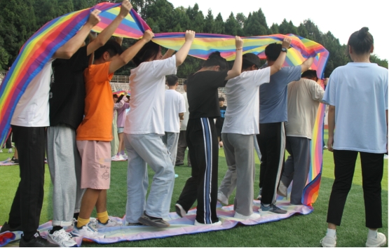 与其说这是一场团队游戏,不如说这是一场班级精神的建设,大家都打起十二分的精神小心翼翼的搭建着属于本班的成功之塔,我不知道他们之间有没有发生过小摩擦,但我知道此刻他们心一定都一定凝聚在了一起,正所谓“人心齐,泰山移”相信在这次体验后,他们都能在这个温馨的“小家庭”里,感受到强烈的归属感。