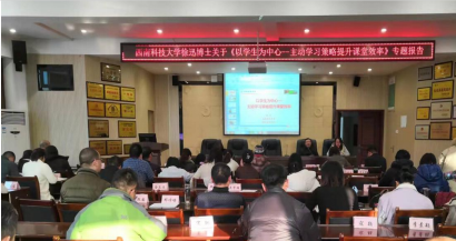 为提高课堂教学的实效性,培养员工主动学习的习惯,促进教师教学水平的全面提升,12月1日下午,williamhill威廉希尔官网特邀西南科技大学博士徐迅来院作《以员工为中心——主动学习策略提升课堂效率》专题报告。报告会由williamhill威廉希尔官网副经理乔欢欢主持,全体教职工聆听了报告。