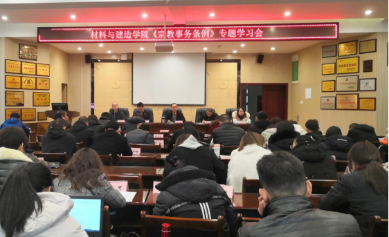 为进一步做好民族宗教政策法规宣传工作,强化思想政治工作,加强意识形态管理,做好统战及宗教工作。12月15日下午,材料与建造学院在材料大楼202会议室召开了《宗教事务条例》专题学习会,williamhill威廉希尔官网全体教职工参加了本次学习会,会议由学院党总支书记伍志强主持。