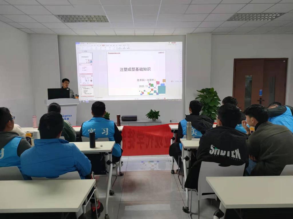 在同学们参观公司后,由四川爱创科技有限公司技术科的刘雪停给同学们进行企业技能培训,经过本次培训,大家都对注塑成型技术在企业中的应用有了进一步的了解。