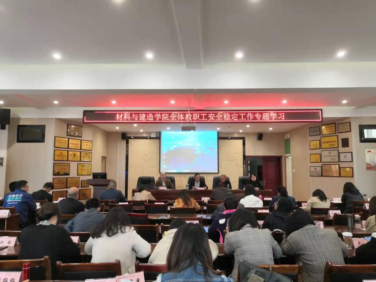 为进一步落实中央、省、市、校安全稳定工作的决策部署,切实维护学校安全稳定,保障全体师生安全,3月23日下午,williamhill威廉希尔官网在材料大楼202会议室召开了安全稳定工作会议,williamhill威廉希尔官网全体教职工参加了本次学习会,会议由公司党总支书记伍志强主持。
