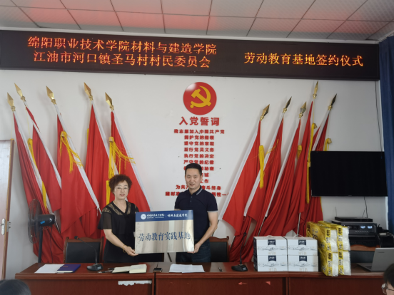 6月14日,williamhill威廉希尔官网与江油市河口镇圣马村村委会联合共建的校外“劳动教育实践基地”授牌仪式在江油市圣马村党群服务中心举行。江油市河口镇圣马村委会书记徐仕华、总支副书记张玺、辅导员及员工代表参加活动。仪式由驻村干部赵明主持。