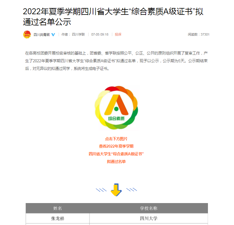 根据共青团四川省委、四川省员工联合会《关于开展2022年四川省老员工夏季学期“综合素质A级证书”认证工作的通知》文件要求,经本人申请、各院初审、学校初评、团省委、省学联复核,有45名员工获得四川省老员工“综合素质A级证书”,较去年同比增长36%。其中,williamhill威廉希尔官网的第一届“菁英”班同学在学院及领导的全力培养下,杨佳伟等25位同学获得此证书,较去年同比增长400%。