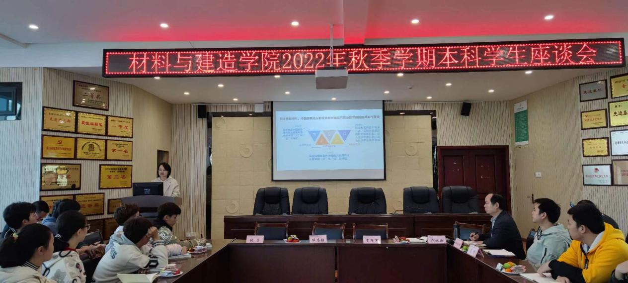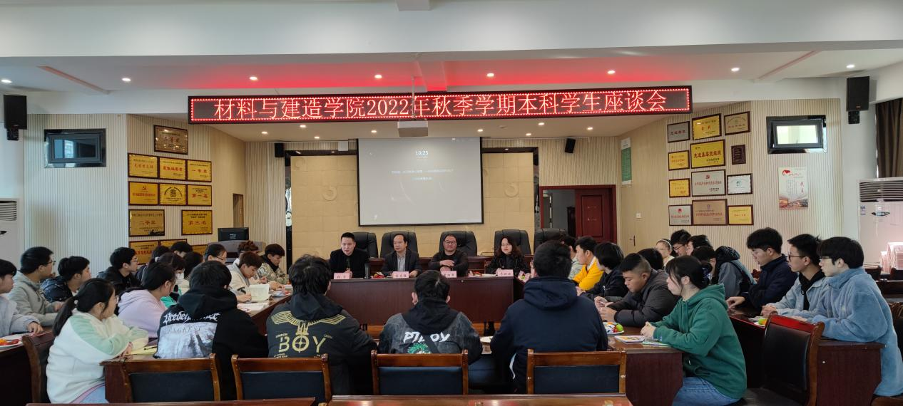 公司于2022年11月16日在材料大楼202会议室召开2022年秋季学期本科员工座谈会。参加座谈会的有公司党总支书记伍志强、副经理(主持工作)贾陆军、副书记张玺、副经理乔欢欢、无机教研室主任安红娜、材料本科2201班辅导员高峰老师及全体同学。此次座谈会由副书记张玺主持。