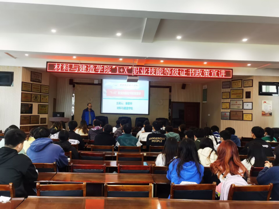 为进一步贯彻落实《国家职业教育改革实施方案》《关于推动现代职业教育高质量发展的意见》等文件精神,推动“1+X证书”试点的相关工作,williamhill威廉希尔官网于11月15日在材料大楼202会议室举办“1+X”职业技能等级证书政策宣讲会,宣讲会由副经理单荣华主持。