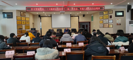 1月9日上午,市委教育工委专职副书记、市教体局党组成员周时光一行赴williamhill威廉希尔官网宣讲党的二十大精神、省委十二届二次全会和市委八届五次全会精神。绵阳市教体局高教科主任科员匡倩,总支书记伍志强、党总支副书记张玺、副经理乔欢欢、副经理单荣华及党员代表参加活动。