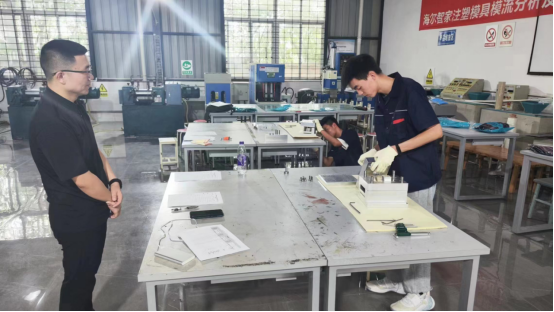 为更好推进“1+X”证书试点工作,提升高分子材料、复合材料智能制造技术专业员工职业技能,6月19日至21日开展了首次取证考核,高分子材料专业与复合材料专业共30名员工参加了本次考核。本次考核包括理论知识、模流分析、模具装配、注塑成型四个模块,由评价组织海尔智家股份有限公司李元浩和杨居两位老师进行线下考核。