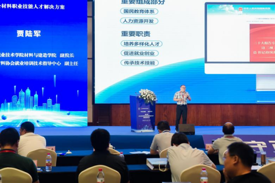 贾陆军以“复合材料行业职业技能人才解决方案”为主题,围绕职业教育体系建设改革、人才需求、产业发展和政策支持,综合分析了复合材料行业技能人才的应用现状,介绍了高职复合材料智能制造技术专业的培养目标、办学定位、典型岗位、课程体系。