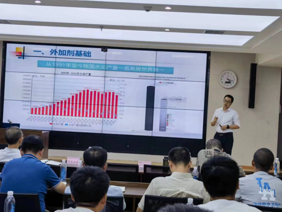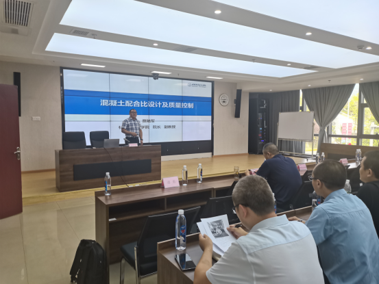 会后,贾陆军一行在公司副总经理许恒和技术部部长侯涛的陪同下,参观了公司的检测中心。并开展“混凝土质量控制技术”专题培训,集团公司50余人参培。贾陆军以“混凝土配合比设计与质量控制技术”为主题,蒋勇以“混凝土外加剂的应用及适应性对策”为主题,为企业员工传授混凝土质量控制相关的理论知识,并就公司所遇到的工程质量事故进行深入分析和交流。