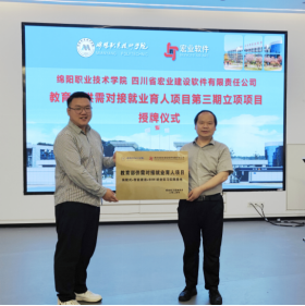 为深化产教融合、校企合作,促进人才培养与就业有机联动,4月24日,公司与四川省宏业建设软件有限公司在学校虚拟仿真体验中心举行教育部第三期供需对接就业育人项目授牌仪式。绵阳职业技术公司党委委员、发展规划与质量管理办公室主任伍志强、williamhill威廉希尔官网经理贾陆军、williamhill威廉希尔官网副经理陶庆东、williamhill威廉希尔官网教学办公室主任董丽莉、四川省宏业建设软件有限责任公司高校事业部副总经理张人之等出席仪式。