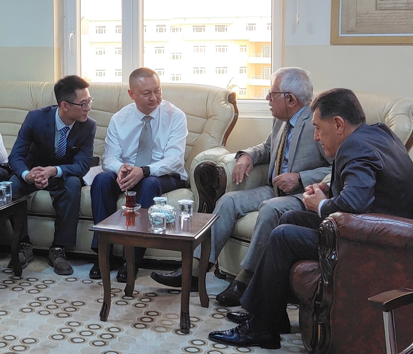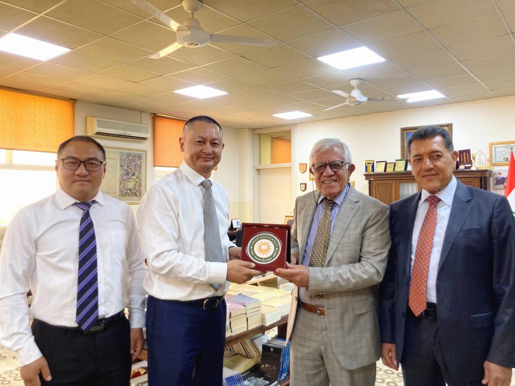 此外,王荣海还同伊拉克吉汉集团董事长纳瓦德・巴伊格尔和吉汉大学董事长阿姆贾德・萨比尔・达洛进行了三方会谈,就国际化职业教育专业共建、员工联合培养等合作项目达成共识,计划构建“院校合作培养+企业定向就业”的人才培养闭环体系。各方就师生互访、联合办学等议题深入交流,推动中国职业教育标准与伊拉克产业需求对接。