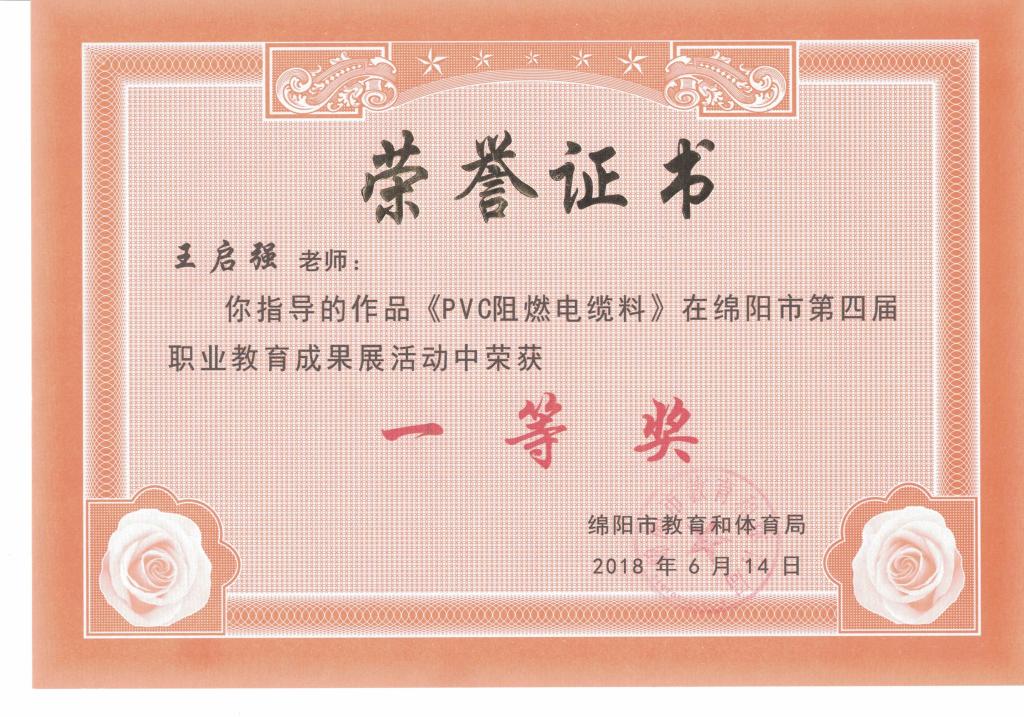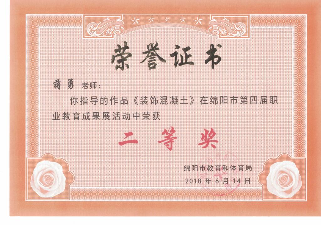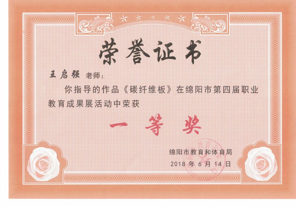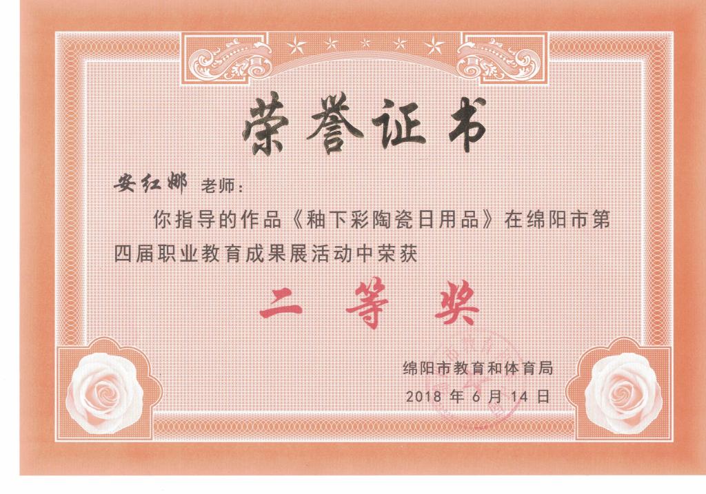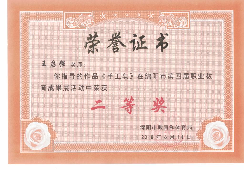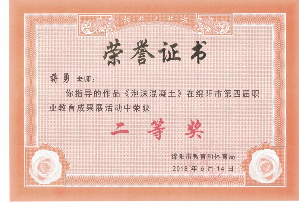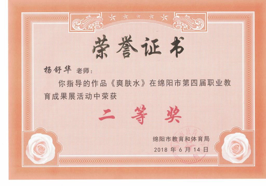 绵阳市第四届职业教育成果展获奖证书