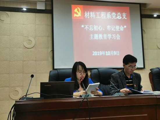 为深入学习习近平新时代中国特色社会主义思想,贯彻习近平总书记关于“不忘初心、牢记使命”主题教育的重要讲话和重要指示批示精神,根据《中共威廉希尔足球官网委员会关于开展“不忘初心、牢记使命”主题教育的实施方案》(绵职公司党发﹝2019﹞51号文)的部署和安排,结合我系实际。10月9日下午,材料工程系党总支在崇实楼202会议室开展了“不忘初心、牢记使命”主题教育学习会,材料工程系全体党员干部参加了本次学习会。材料工程系党总支书记豆祎主持了本次学习活动。