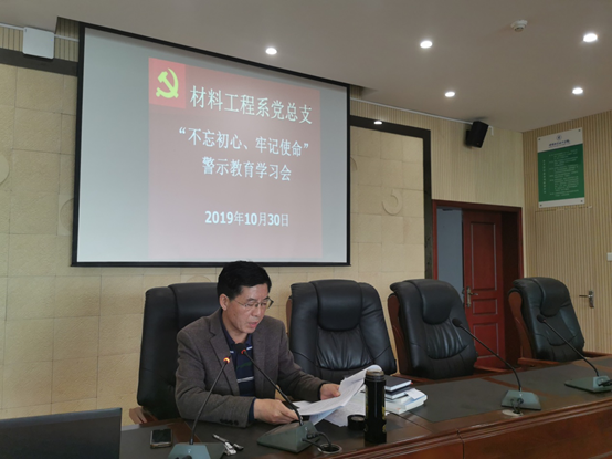 材料工程系党总支开展“不忘初心、牢记使命”警示教育学习会