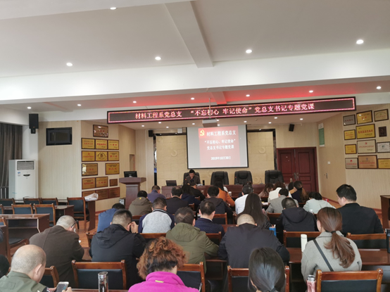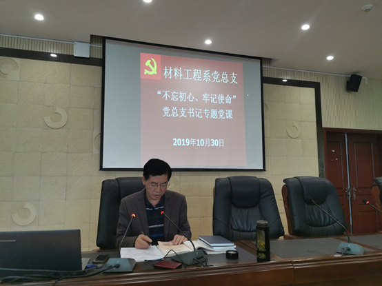 为深入学习习近平新时代中国特色社会主义思想,贯彻习近平总书记关于“不忘初心、牢记使命”主题教育的重要讲话和重要指示批示精神,推动学习“不忘初心、牢记使命”主题教育往深里走、往心里走、往实里走,确保主题教育各项活动取得成效。根据《中共威廉希尔足球官网委员会关于开展“不忘初心、牢记使命”主题教育的实施方案》(绵职公司党发﹝2019﹞51号文)的部署和安排,结合我系实际。10月30日中午,材料工程系党总支在崇实楼202会议室开展了“不忘初心、牢记使命”——党总支书记讲党课主题教育活动,材料工程系全体教职工参加。材料工程系党总支书记豆祎主持了本次主题教育活动。