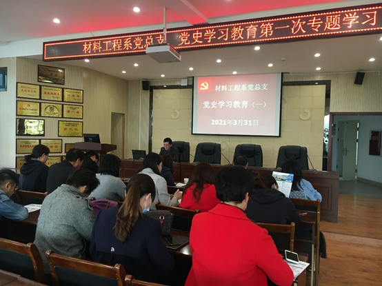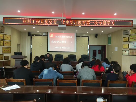 2021年是中国共产党成立100周年。在全党开展党史学习教育,是党中央立足党的百年历史新起点、统筹中华民族伟大复兴战略全局和世界百年未有之大变局、为动员全党全国各族人民满怀信心投身全面建设社会主义现代化国家而作出的重大决策。为深入学习领会习近平总书记关于党的历史的重要论述,充分认识开展党史学习教育的重大意义,全面了解中国共产党百年奋斗的光辉历程和历史性贡献,提高全体党员的思想认识,增强学习教育的行动自觉。根据《中共威廉希尔足球官网委员会关于开展党史学习教育的实施方案》(绵职公司党发〔2021〕17号)的部署和安排。3月31日下午,材料工程系党总支在崇实楼202会议室开展了党史学习教育第一次专题学习会,材料工程系全体党员参加了本次学习会。材料工程系党总支书记豆祎主持了本次学习活动。