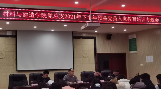 为进一步加强对预备党员的教育管理,深入推进党的十九届六中全会精神和党史主题教育,总支于2021年12月15日下午13:00在材料大楼202开展了2021年下半年预备党员入党教育培训专题会。总支书记伍志强、副书记张玺,第五党支部书记康城源、支部党员老师和全体预备党员参加了此次培训会。大会由第五党支部书记康城源主持。