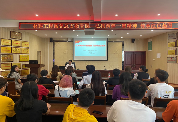 在中国共产党成立100周年之际,为深入开展党史学习教育,引导员工党员学史明理、学史增信、学史崇德、学史力行,推动党史学习教育走深走实。根据《中共威廉希尔足球官网委员会关于开展党史学习教育的实施方案》(绵职公司党发〔2021〕17号)的部署和安排。6月11日中午,材料工程系党总支在材料大楼202会议室开展了“弘扬两弹一星精神 传承红色基因”专题教育微党课。材料工程系员工党员及入党积极分子、全体辅导员、团学干部代表等50余人参加了本次微党课学习。本次微党课由材料工程系党总支书记豆祎主讲。