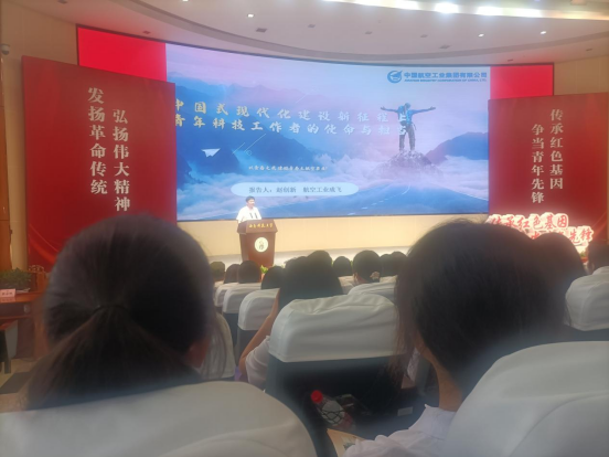 红色典型宣讲人、全国青年岗位能手、成飞公司技术中心副主任赵创新以“中国式现代化建设新征程上青年科技工作者的使命与担当”为题分享了他与团队立足党和国家事业开展技术创新,逐梦航空的报国“初心”;讲述敢于拼搏,散闯散试,坚持不懈,把拼搏奋斗坚持到底的创新“决心”;展示不怕艰难险阻,不畏惧困难挑战,团结一致参加竞赛、创新技术的“同心”。他鼓励同学们要冲锋在前、奋斗在前,敢于创新,敢于拼搏,敢于闯关,敢于胜利,为中国发展助跑,为民族复兴助力,让青春在科技自立自强的火热实践中绽放。