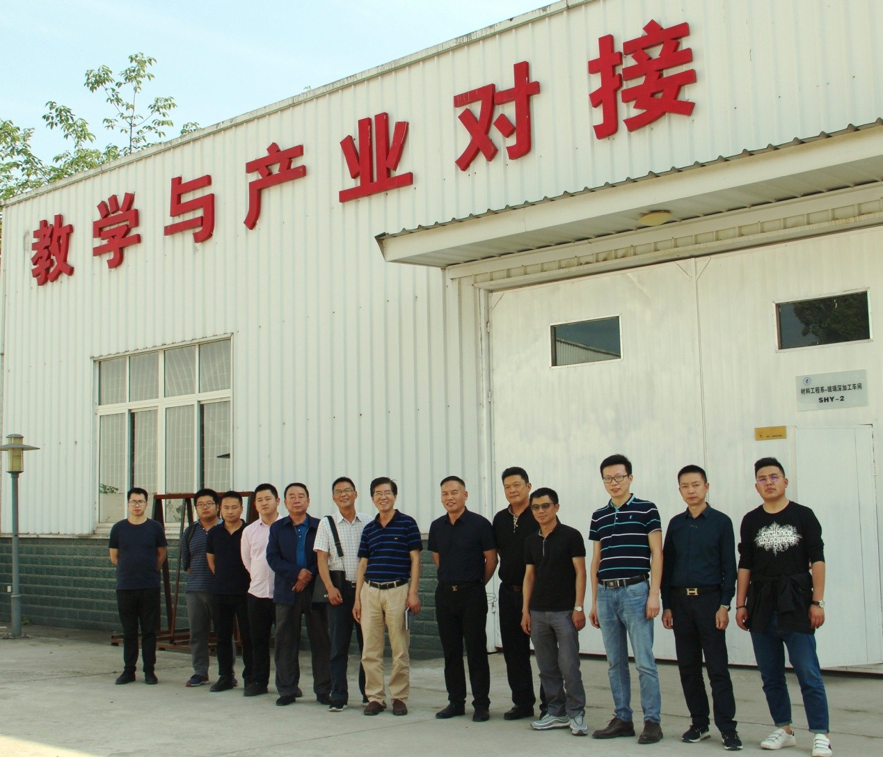 校企合作签约暨企业捐赠仪式结束后,企业代表们一起参观了学校行政楼接待中心、材料工程系四合院生产车间和崇实楼材料系实训中心。