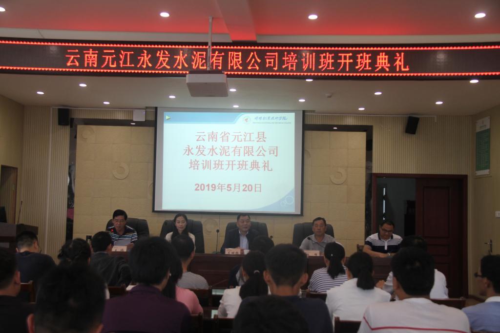 最后,系党总支书记豆祎代表全系教职工对云南元江永发水泥有限公司培训班正式开班表示祝贺,对培训班学员表示热烈的欢迎并对培训班学员和任课老师提出了要求,希望学员能充分认识此次学习的重要性,珍惜学习机会,补充专业知识,提高专业技能,静心学习,全身心投入,圆满的完成培训学习任务。同时也希望各任课老师认真备课,严格按照培训教学计划认真完成教学和实训任务。