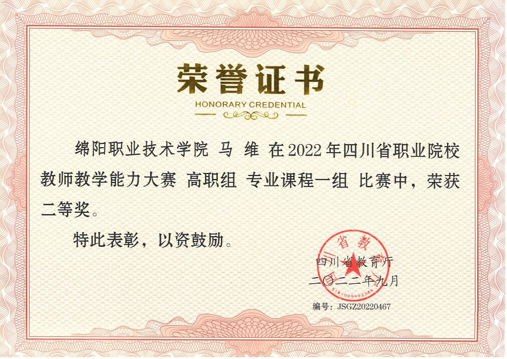 马维 2022年四川省职业院校教师教学能力大赛高职组专业课程一组比赛,荣获二等奖