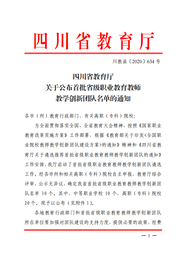 四川省教育厅关于公布首批省级职业教育教师教学创新团队名单的通知 (2).pdf