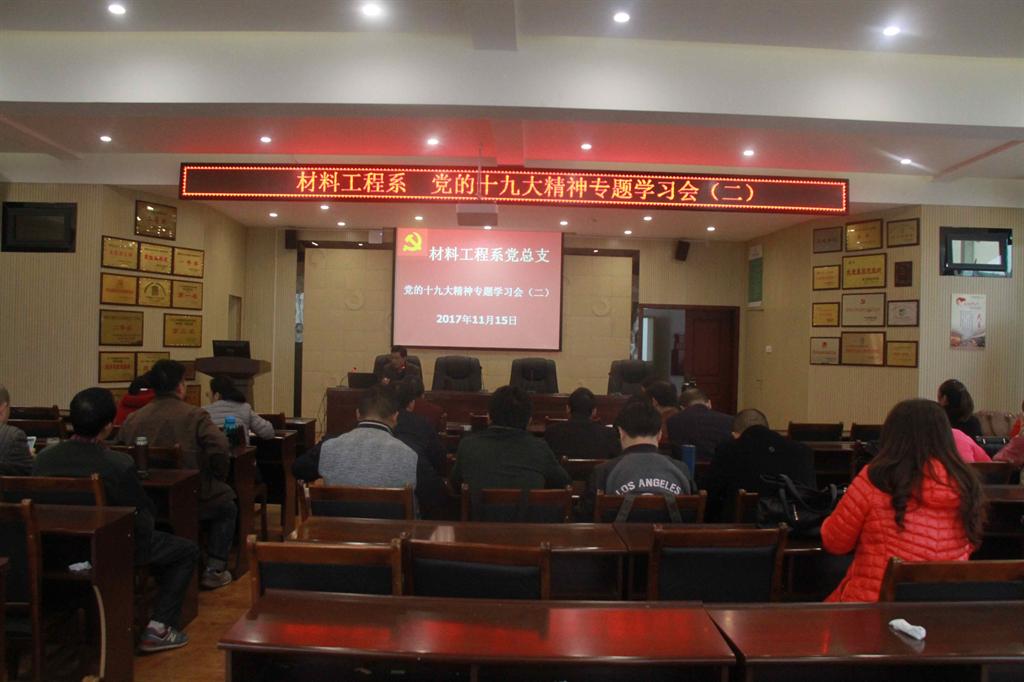 11月15日下午,材料工程系党总支在崇实楼二楼会议室举行党的十九大精神专题学习会(二),材料系全体教职工参加了本次专题学习会,系党总支副书记豆祎主持了本次学习会。