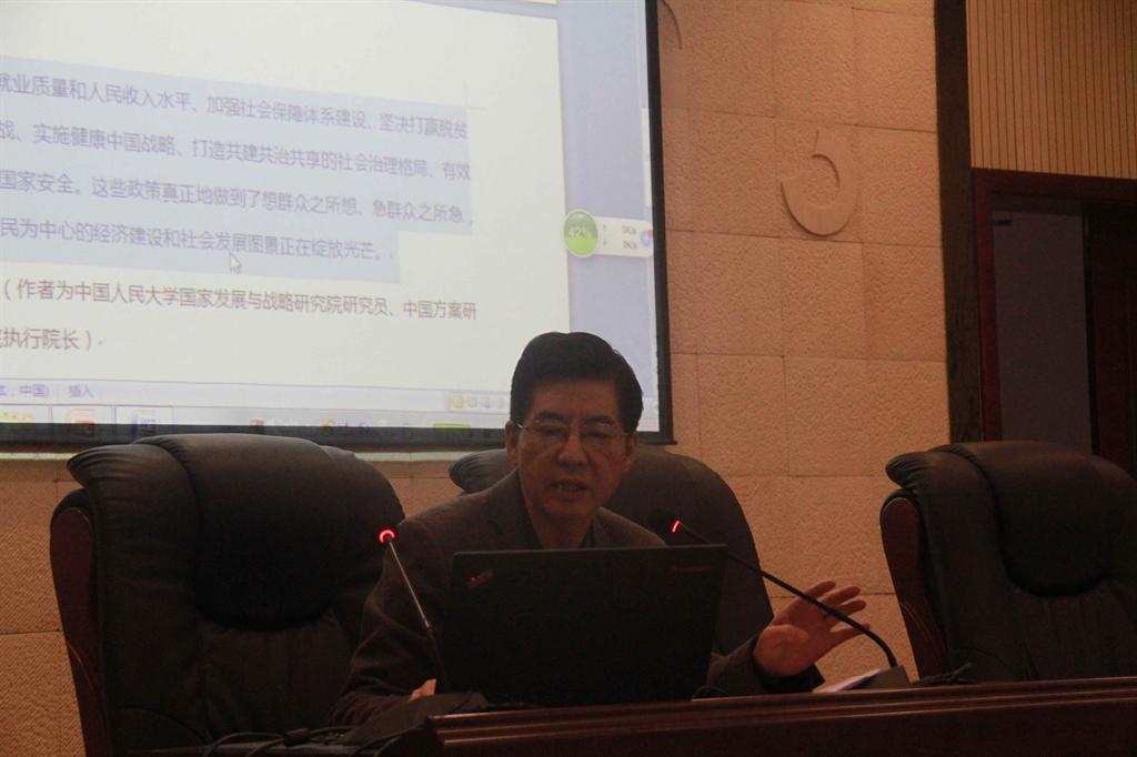 豆祎借助于PPT和视频就党的十九大报告聚焦“民生”,坚持以人民为中心的发展思想、全面开启中华民族强起来的新时代两个主题内容的主要精神做了解读,他在会上讲到:全体党员应该认真研读党的十九大报告全文,学习贯彻党的十九大精神,深入把握新时代中国特色社会主义思想,明确十九大报告对我们实际工作的重要意义。希望全体教职工能够学有所得,学以致用,将新时代中国特色社会主义思想、理念、战略转变为价值导向,转化为实践举措,付诸于今后的教学、科研、学习、工作当中,以实际行动为学校和系部各项事业的发展,为实现中华民族的伟大复兴贡献力量。